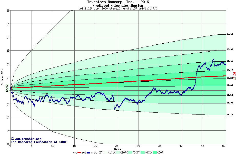 The following graph plots the year-to-date performance of the stock for 2016 compared to the probability calculated by a random walk model.