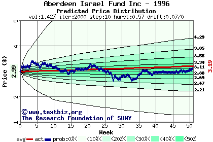 The following graph plots the year-to-date performance of the stock for 1996 compared to the probability calculated by a random walk model.