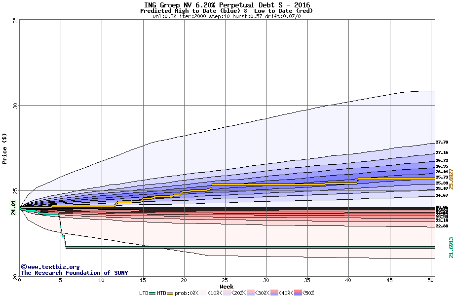 The following graph plots the year-to-date performance of the stock for 2016 compared to the probability calculated by a random walk model.