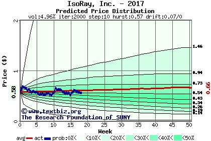 The high to date and low to date prices of the stock plotted against a random walk model for 2017 (what's this?).
