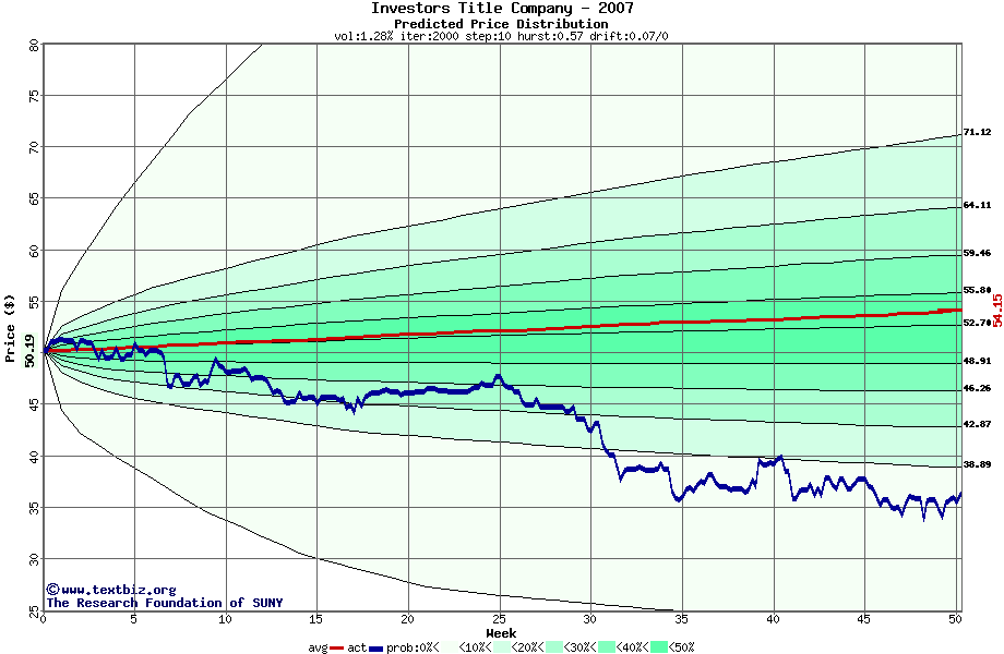 The following graph plots the year-to-date performance of the stock for 2007 compared to the probability calculated by a random walk model.