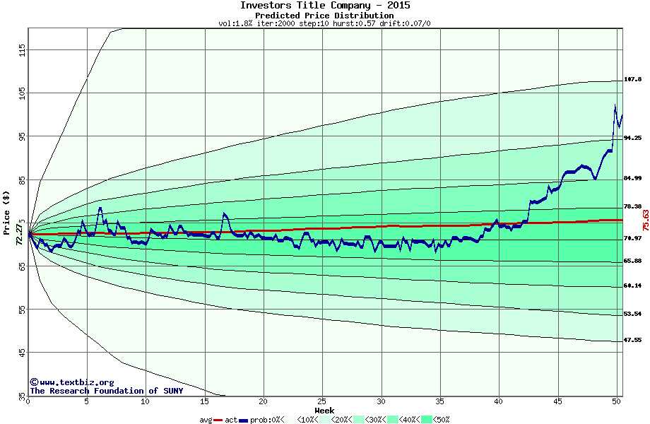 The following graph plots the year-to-date performance of the stock for 2015 compared to the probability calculated by a random walk model.