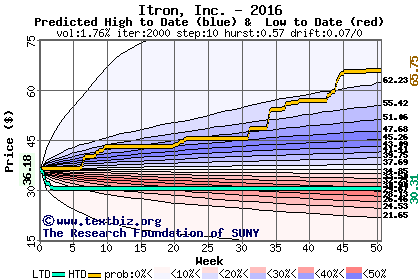 The following graph plots the year-to-date performance of the stock for 2016 compared to the probability calculated by a random walk model.