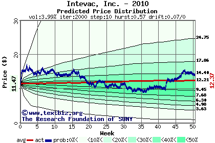 The following graph plots the year-to-date performance of the stock for 2010 compared to the probability calculated by a random walk model.