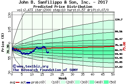 The following graph plots the year-to-date performance of the stock for 2017 compared to the probability calculated by a random walk model.