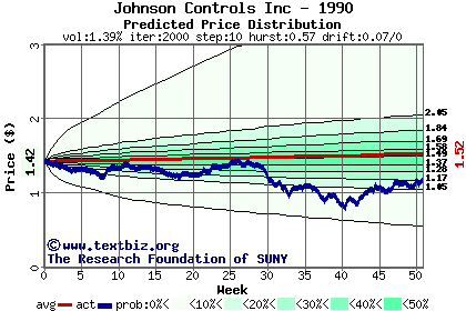 The following graph plots the year-to-date performance of the stock for 1990 compared to the probability calculated by a random walk model.