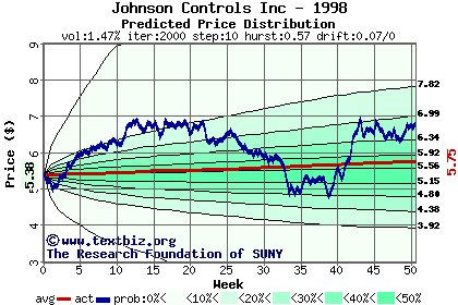 The following graph plots the year-to-date performance of the stock for 1998 compared to the probability calculated by a random walk model.