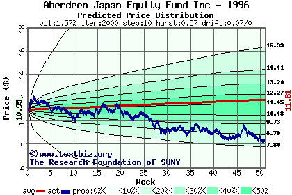 The following graph plots the year-to-date performance of the stock for 1996 compared to the probability calculated by a random walk model.