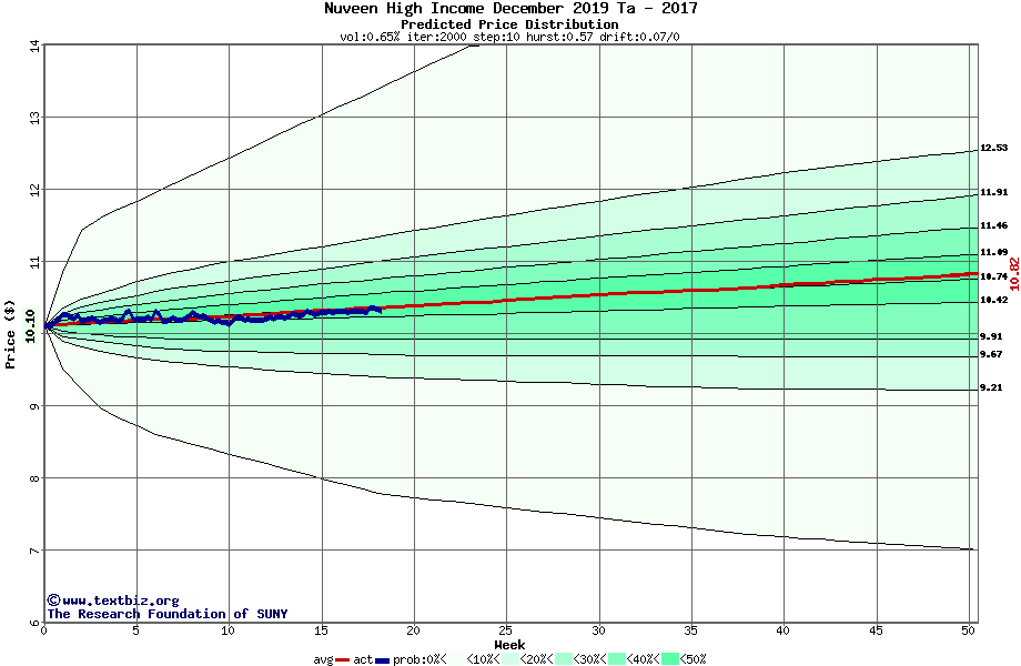 The following graph plots the year-to-date performance of the stock for 2017 compared to the probability calculated by a random walk model.