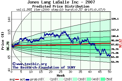 The following graph plots the year-to-date performance of the stock for 2007 compared to the probability calculated by a random walk model.