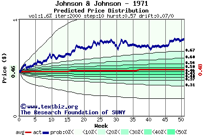 The following graph plots the year-to-date performance of the stock for 1971 compared to the probability calculated by a random walk model.