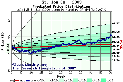 The following graph plots the year-to-date performance of the stock for 2003 compared to the probability calculated by a random walk model.