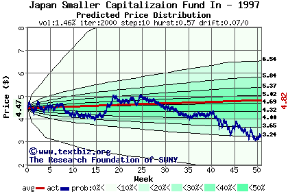 The following graph plots the year-to-date performance of the stock for 1997 compared to the probability calculated by a random walk model.