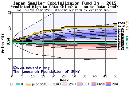 The following graph plots the year-to-date performance of the stock for 2015 compared to the probability calculated by a random walk model.
