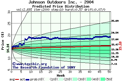 The following graph plots the year-to-date performance of the stock for 2004 compared to the probability calculated by a random walk model.