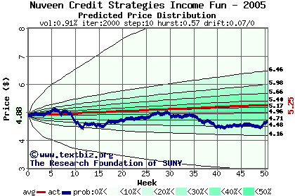 The following graph plots the year-to-date performance of the stock for 2005 compared to the probability calculated by a random walk model.