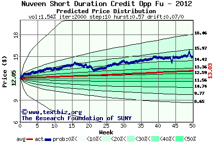 The following graph plots the year-to-date performance of the stock for 2012 compared to the probability calculated by a random walk model.