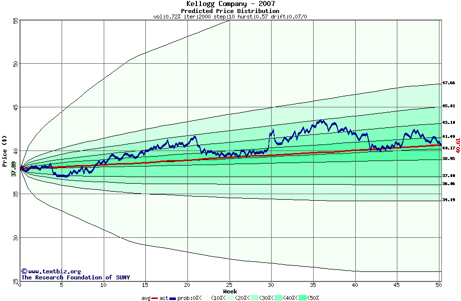 The following graph plots the year-to-date performance of the stock for 2007 compared to the probability calculated by a random walk model.