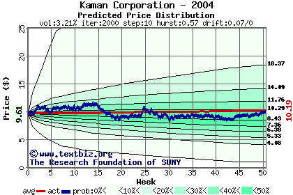 The following graph plots the year-to-date performance of the stock for 2004 compared to the probability calculated by a random walk model.
