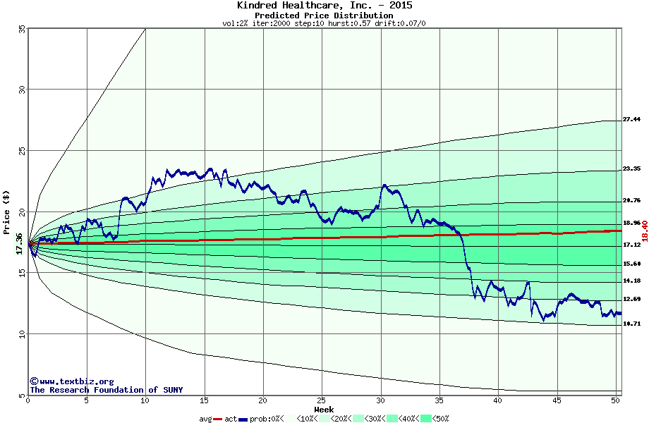 The following graph plots the year-to-date performance of the stock for 2015 compared to the probability calculated by a random walk model.
