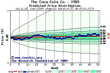 The following graph plots the year-to-date performance of the stock for 1983 compared to the probability calculated by a random walk model.
