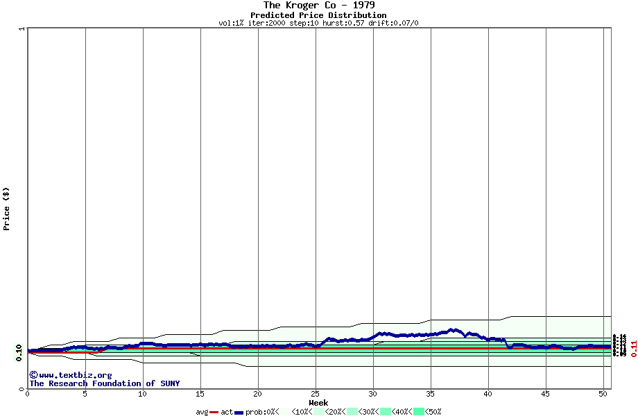 The following graph plots the year-to-date performance of the stock for 1979 compared to the probability calculated by a random walk model.