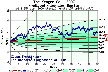 The following graph plots the year-to-date performance of the stock for 2007 compared to the probability calculated by a random walk model.