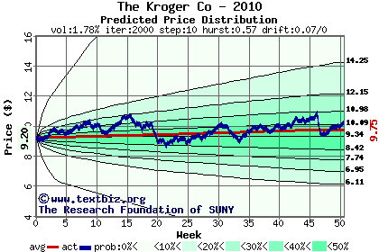 The following graph plots the year-to-date performance of the stock for 2010 compared to the probability calculated by a random walk model.