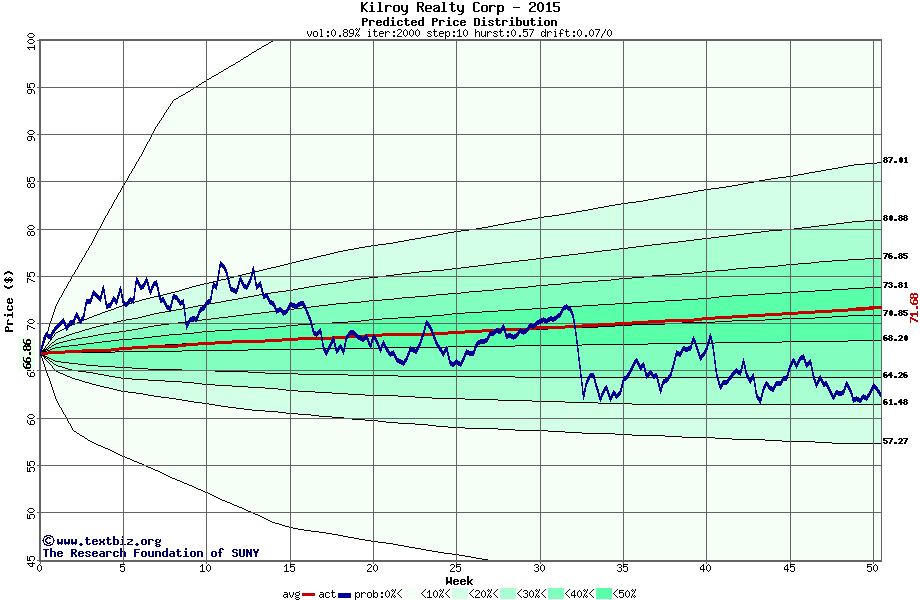 The following graph plots the year-to-date performance of the stock for 2015 compared to the probability calculated by a random walk model.