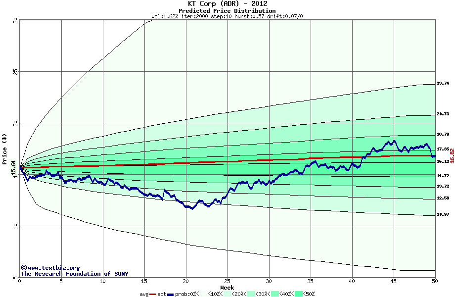 The following graph plots the year-to-date performance of the stock for 2012 compared to the probability calculated by a random walk model.