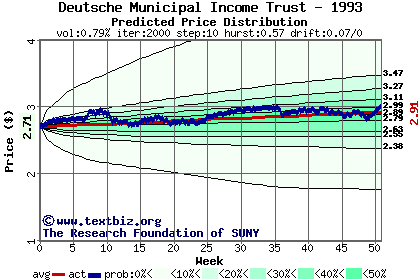 The high to date and low to date prices of the stock plotted against a random walk model for 1993 (what's this?).