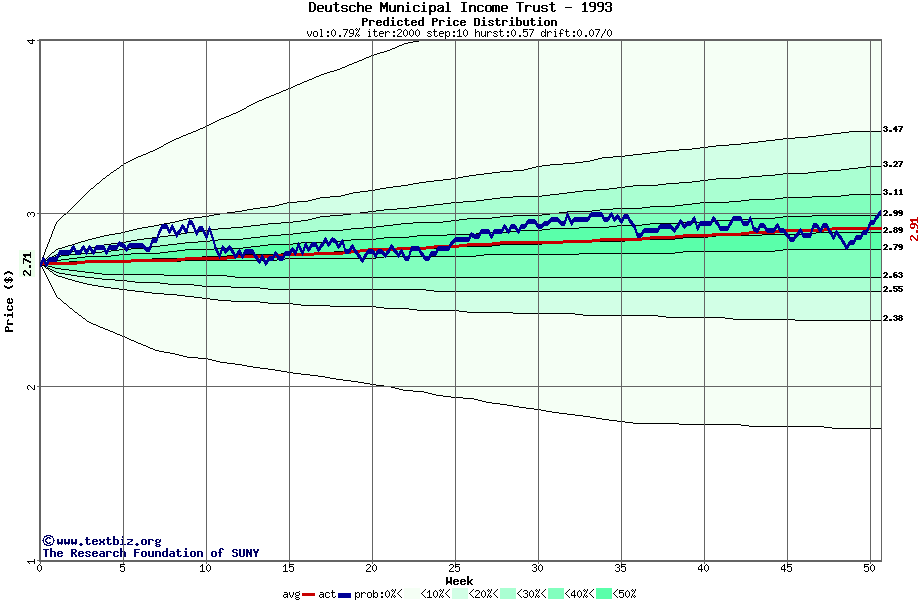 The following graph plots the year-to-date performance of the stock for 1993 compared to the probability calculated by a random walk model.