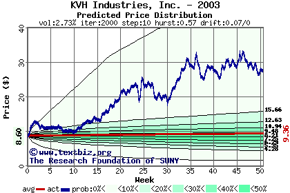 The following graph plots the year-to-date performance of the stock for 2003 compared to the probability calculated by a random walk model.