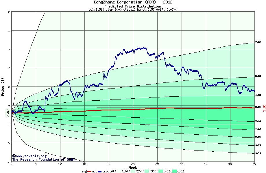 The following graph plots the year-to-date performance of the stock for 2012 compared to the probability calculated by a random walk model.