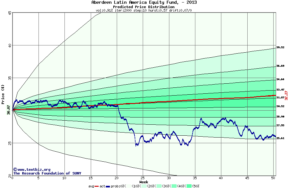 The following graph plots the year-to-date performance of the stock for 2013 compared to the probability calculated by a random walk model.
