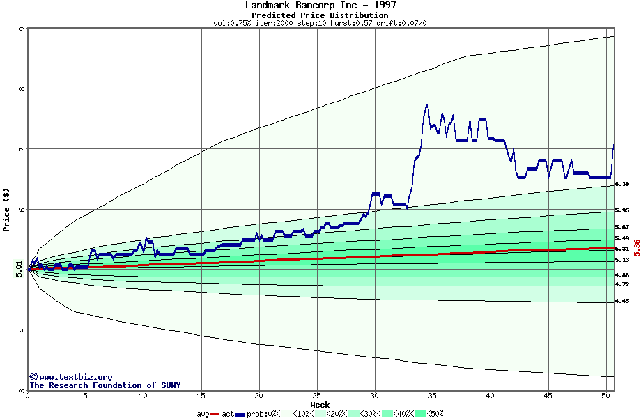 The following graph plots the year-to-date performance of the stock for 1997 compared to the probability calculated by a random walk model.