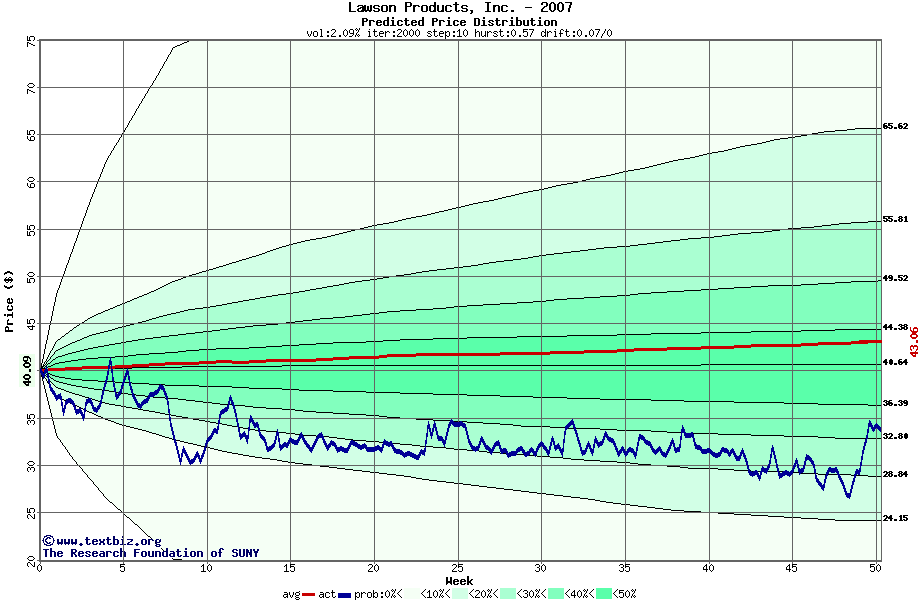 The following graph plots the year-to-date performance of the stock for 2007 compared to the probability calculated by a random walk model.