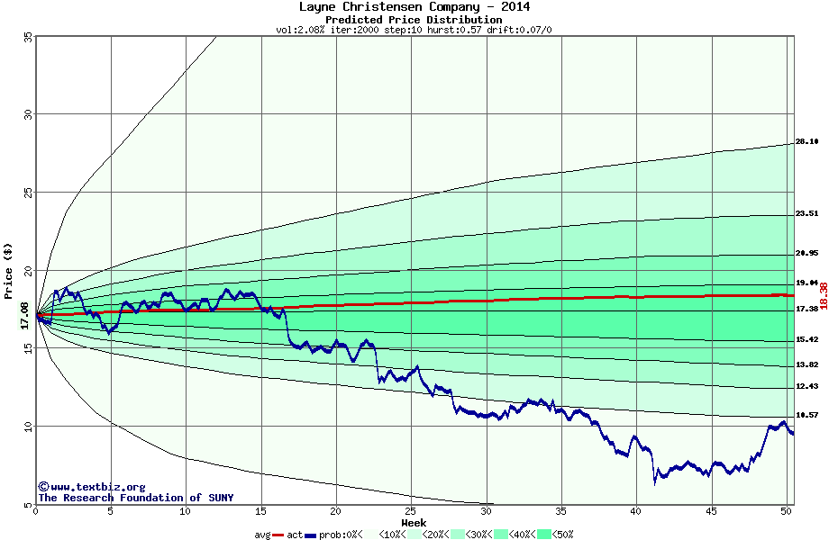 The following graph plots the year-to-date performance of the stock for 2014 compared to the probability calculated by a random walk model.