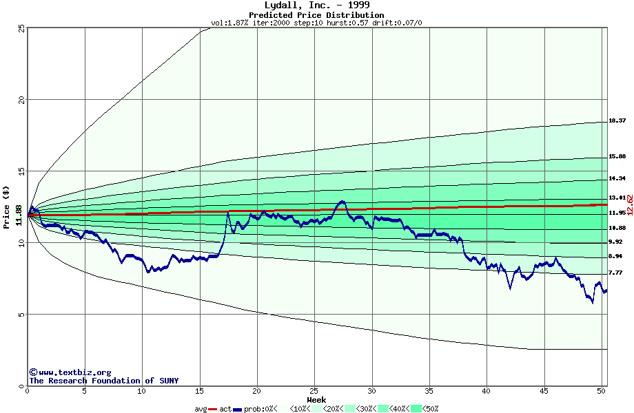 The following graph plots the year-to-date performance of the stock for 1999 compared to the probability calculated by a random walk model.