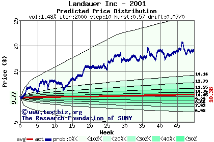 The following graph plots the year-to-date performance of the stock for 2001 compared to the probability calculated by a random walk model.
