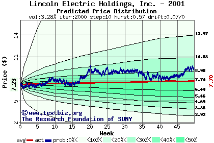 The following graph plots the year-to-date performance of the stock for 2001 compared to the probability calculated by a random walk model.