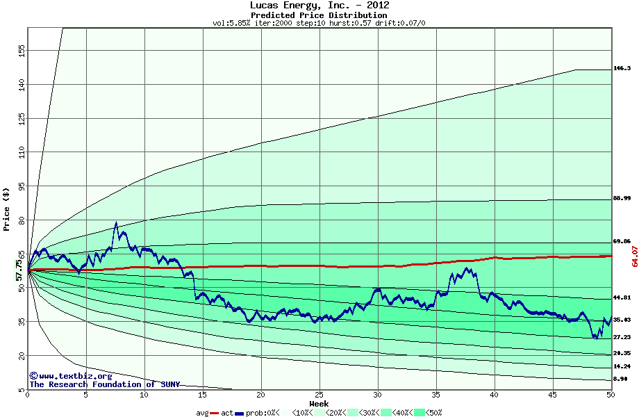 The following graph plots the year-to-date performance of the stock for 2012 compared to the probability calculated by a random walk model.