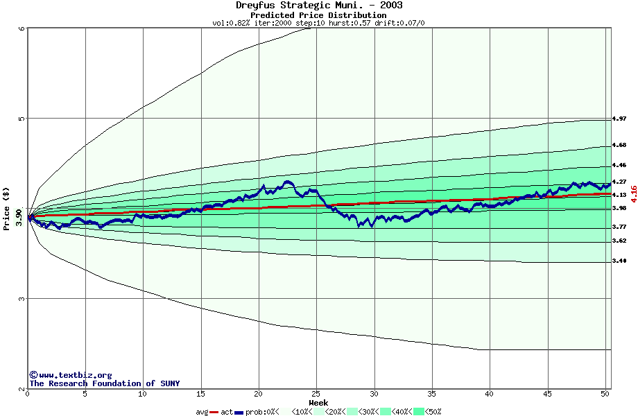 The following graph plots the year-to-date performance of the stock for 2003 compared to the probability calculated by a random walk model.