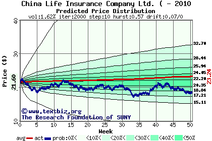 The following graph plots the year-to-date performance of the stock for 2010 compared to the probability calculated by a random walk model.