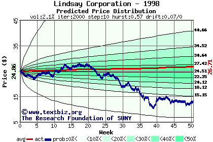 The following graph plots the year-to-date performance of the stock for 1998 compared to the probability calculated by a random walk model.