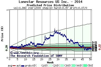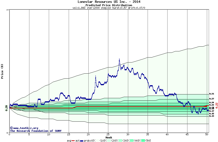 The following graph plots the year-to-date performance of the stock for 2014 compared to the probability calculated by a random walk model.
