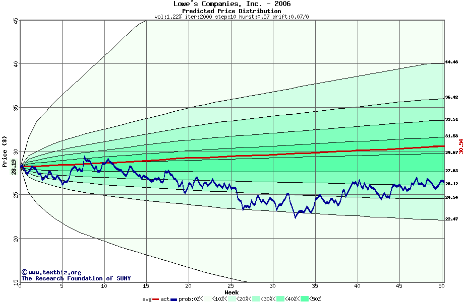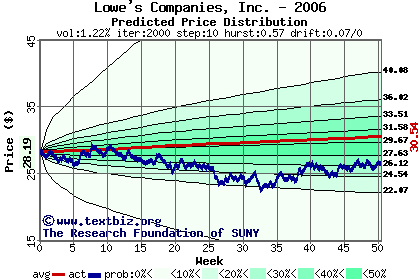 The following graph plots the year-to-date performance of the stock for 2006 compared to the probability calculated by a random walk model.