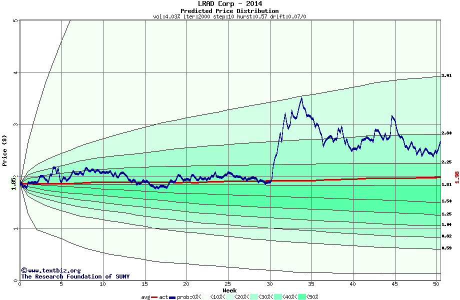 The following graph plots the year-to-date performance of the stock for 2014 compared to the probability calculated by a random walk model.
