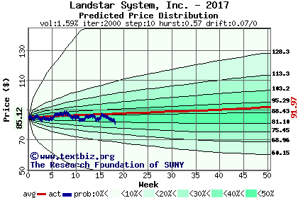The following graph plots the year-to-date performance of the stock for 2017 compared to the probability calculated by a random walk model.