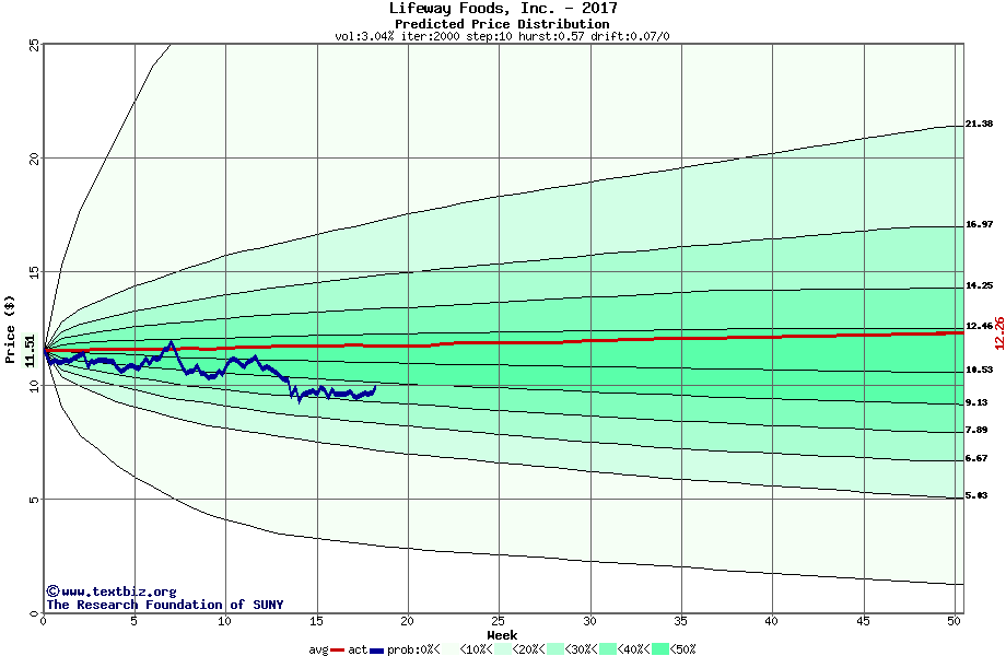 The following graph plots the year-to-date performance of the stock for 2017 compared to the probability calculated by a random walk model.